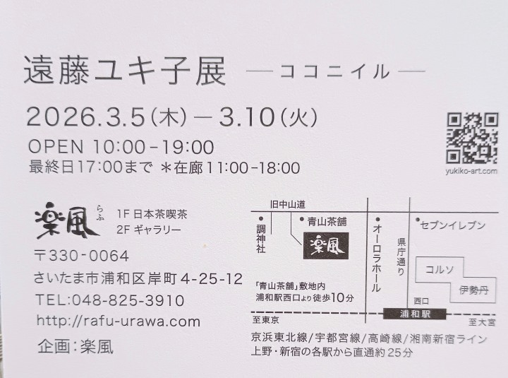「日本茶喫茶.ギャラリー楽風で個展を開催いたします。